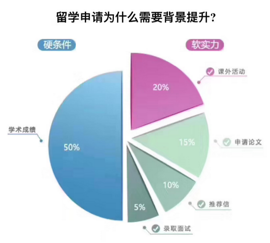 “背景提升”是指学生通过参加实习、学术研究、社会实践项目等活动提升自己在标准化考试成绩之外的一系列“软实力”,从而增强自己申请国外名校的竞争力,从相似的申请群体中提现出自己不可替代的差异性。甚至能在未来找工作时脱颖而出,提前一年拿到offer