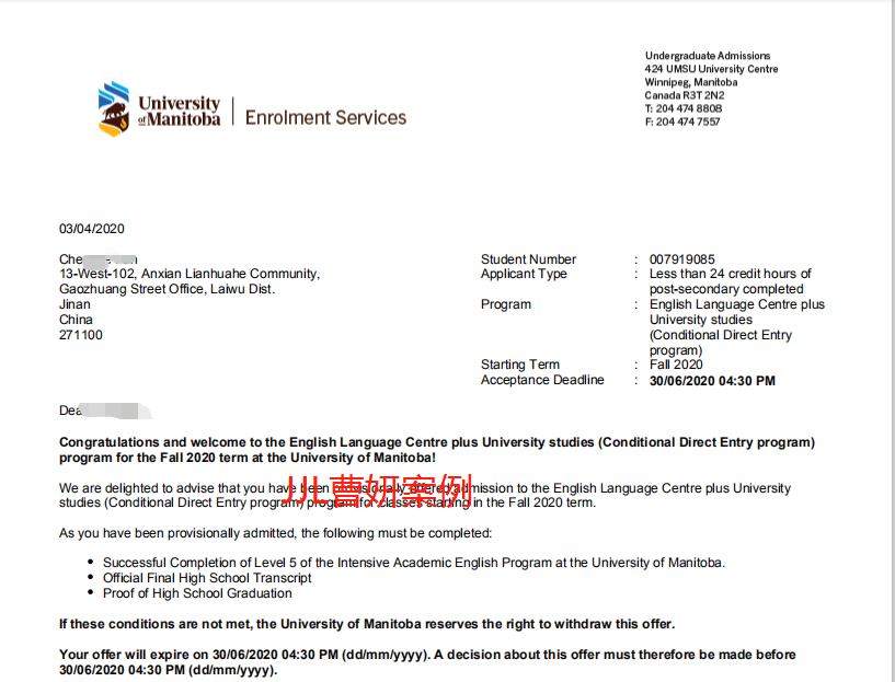 学生家长有移民加拿大的打算,经过院校和各个地区学校的筛查,家长比较意向曼省的曼尼托巴大学。毕业后,比较好移民。最终经过规划申请,学生拿到曼尼托巴大学的录取!