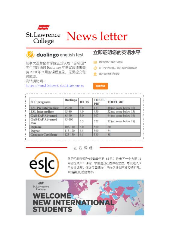 圣劳伦斯学院今天正式认可Duolingo测试,学生可以凭借测试成绩申请直录课程,无需提供雅思成绩!