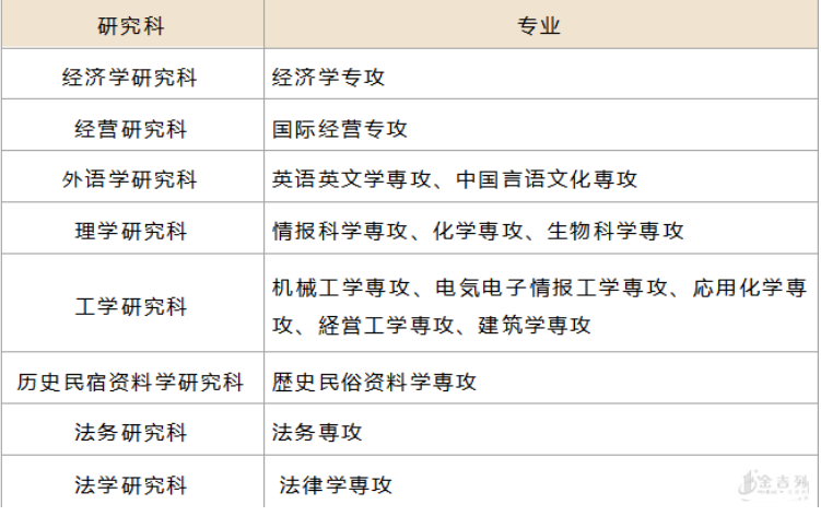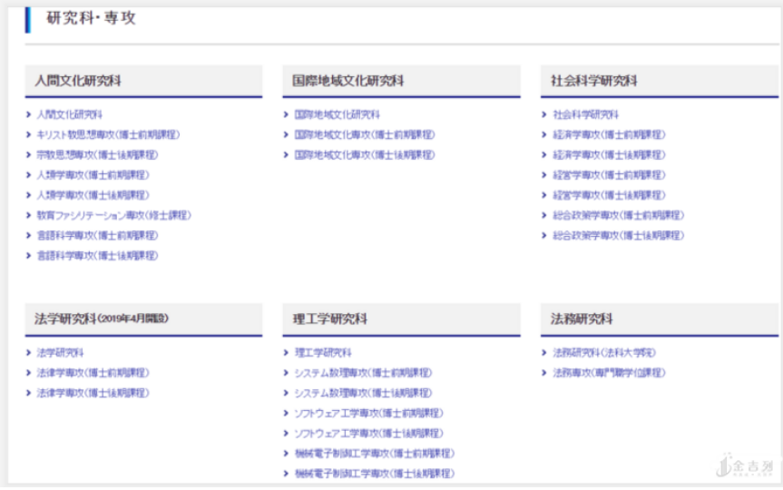 先端科学技术研究科、未来科学研究科、工学研究科、理工学研究科、情报环境学 研究科以信息环境学研究科。