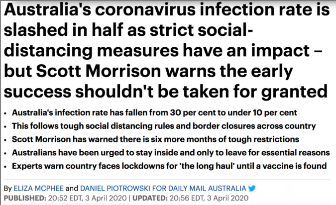澳洲的疫情形势看起来有所缓解,侧面印证了种种措施确实是有效的。但是现在确实还不是放松警惕的时候!毕竟COVID-19是非常狡猾的,一旦人们放松警惕,它随时可能再次大爆发!
