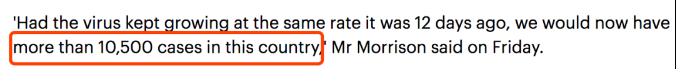 莫里森表示:“如果COVID-19感染率以与12天前相同的速度增长,那么现在澳洲将有10,500例病例!”