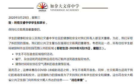 首先,文睿给所有学生家长都发了邮件,邮件中强调学校把学生的健康和安全放在第一位,并强制限制学生外出,学生只能在指定的安全的校园范围进行活动。