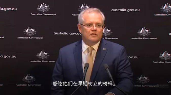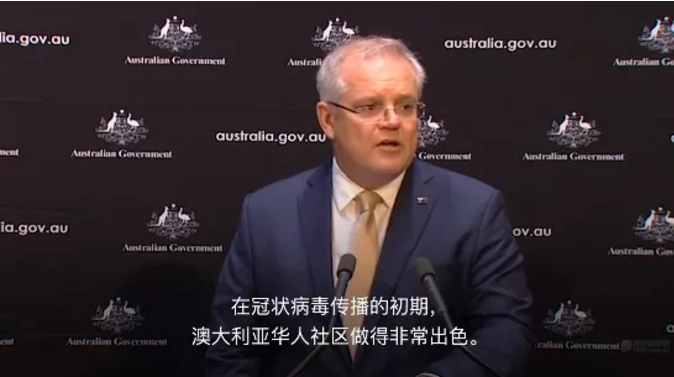 昨晚,澳洲总理莫里森发布个人微信,在文章中,他回顾了过去10周澳洲对抗新冠病毒的历程,并特别强调:"感谢澳洲的华人社区在努力遏制和限制病毒传播方面树立的榜样。"