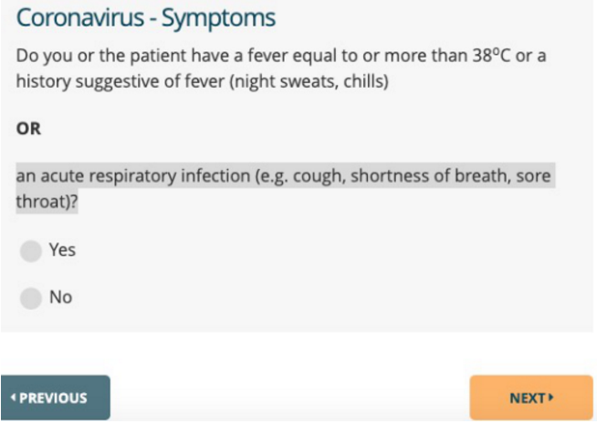 接下来会问你有没有发烧到38度以上,或者有没有急性呼吸道感染。