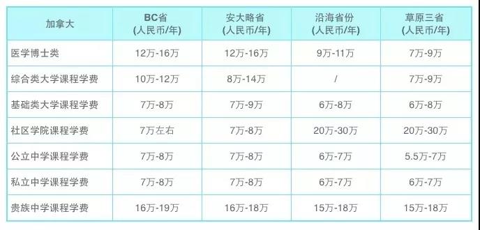 我们先来一张图,来整体了解一下加国各类学校的留学费用。