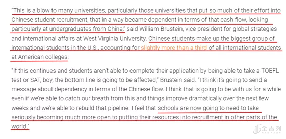 另一方面,美国拥有约110万国际学生,占大学生总数的5.5%。他们向美国大学支付州外学费,这些占学校总体收入的很大一部分。如今疫情导致的各种不便利,让个别大学已经承受不来…