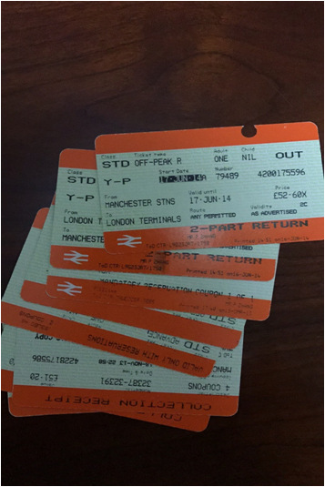 从图里可以看到,当时张老师从曼城坐火车到伦敦的火车票价为52英镑。