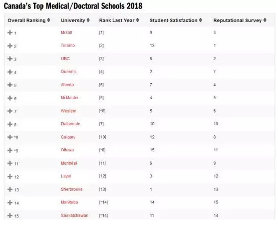 例如,在医博类大学中,综合来看排前三的是麦吉尔大学,多伦多大学和英属哥伦比亚大学。然而如果考虑教授团队获奖的数量,排名前三的是多大,女王大学和阿尔伯塔大学。如果论及,总计研究经费排名前三是多大,麦克马斯特大学和蒙特利尔大学。大学运营经费排名,前三名是阿尔伯塔大学,萨省大学与卡尔加里大学;从学生满意度上来看,排名前三的大学又变成了女王大学,西安大略大学和麦克马斯特大学。
