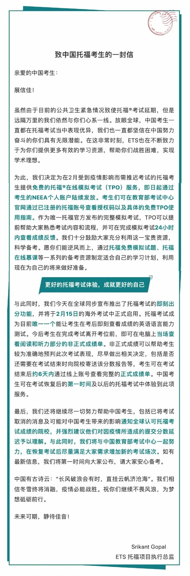 据TOEFL托福考试官方社区 ,根据当前中国各省市针对新型冠状病毒疫情突发公共卫生事件一级响应的要求,托福考试决定取消在中国大陆地区三月份所有考试。至此,中国大陆地区二、三月份所有托福考试均已取消。所有原定于3月考试的考生可以免费转考至其他月份。