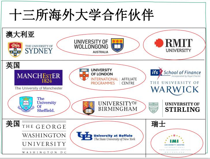 3.通往世界名校的跳板,与世界名校伦敦大学,伯明翰大学等有合作课程