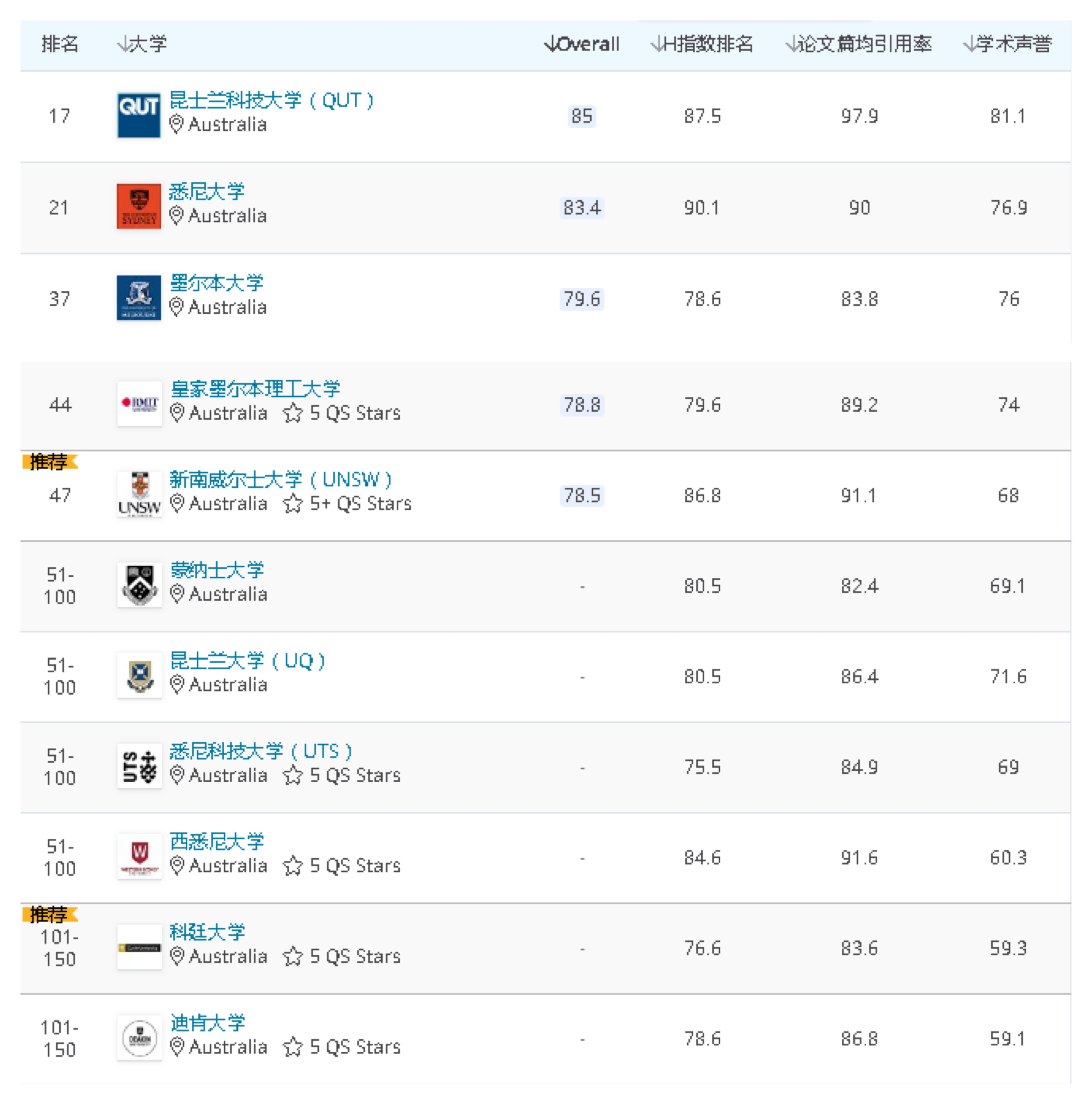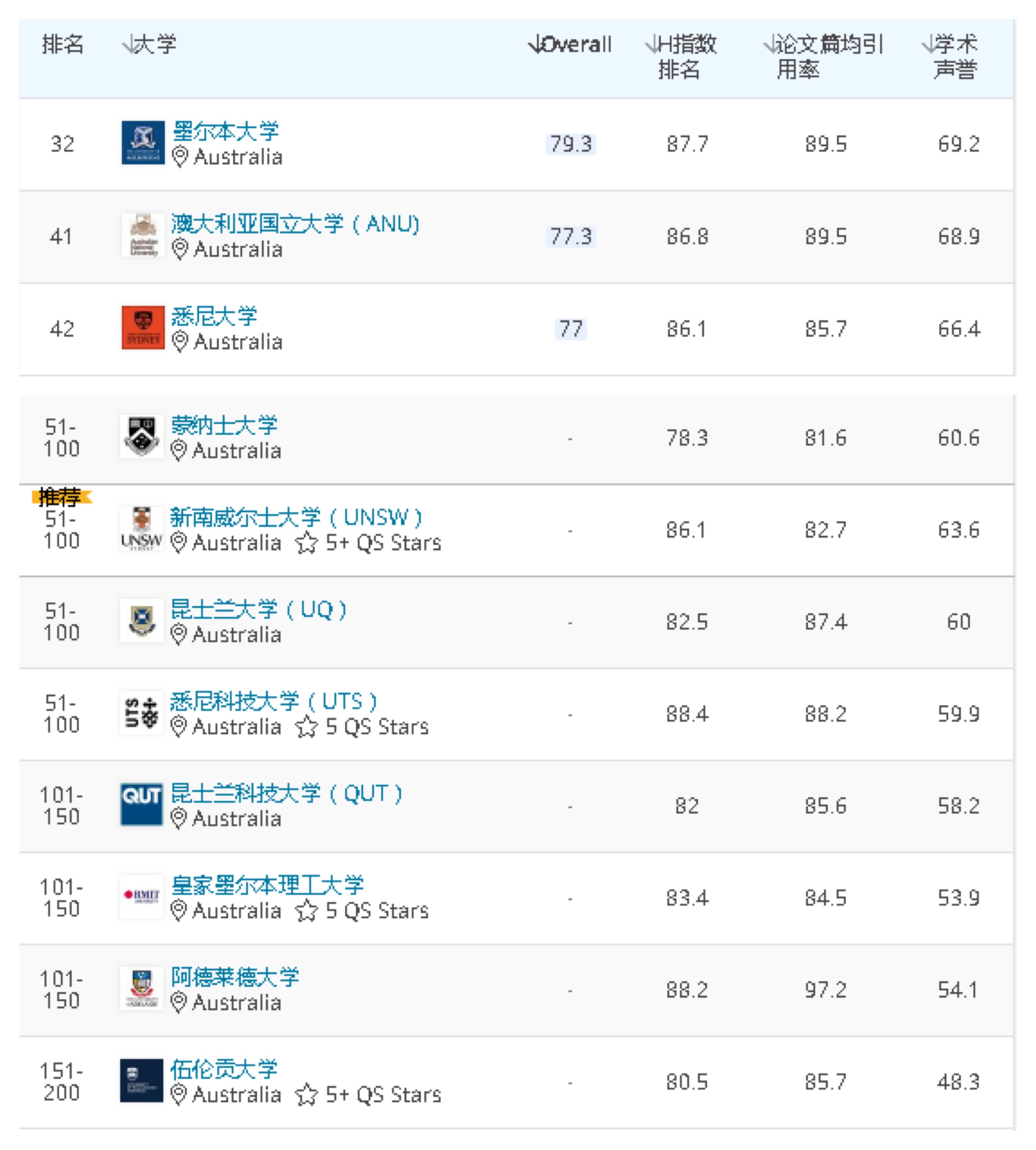 下面殷老师为大家总结了澳大利亚院校在本次排名中的表现~