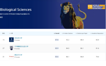 只有加拿大前三强入选。生物科学或者生命科学是进入医学院或者药理学第一年可以选择的跳板专业,所以你要是有崇高的从医梦,可以以这个专业作为起点。