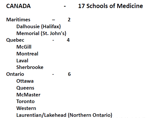 大部分加拿大的医学院不招收国际生,因为他们更愿意培养本土本省的人才来当自己的医生,他们也不会发offer那些不用交税的人(也就是国际生)。招收国际生的医学院,是和其他国家/机构有合作项目的。