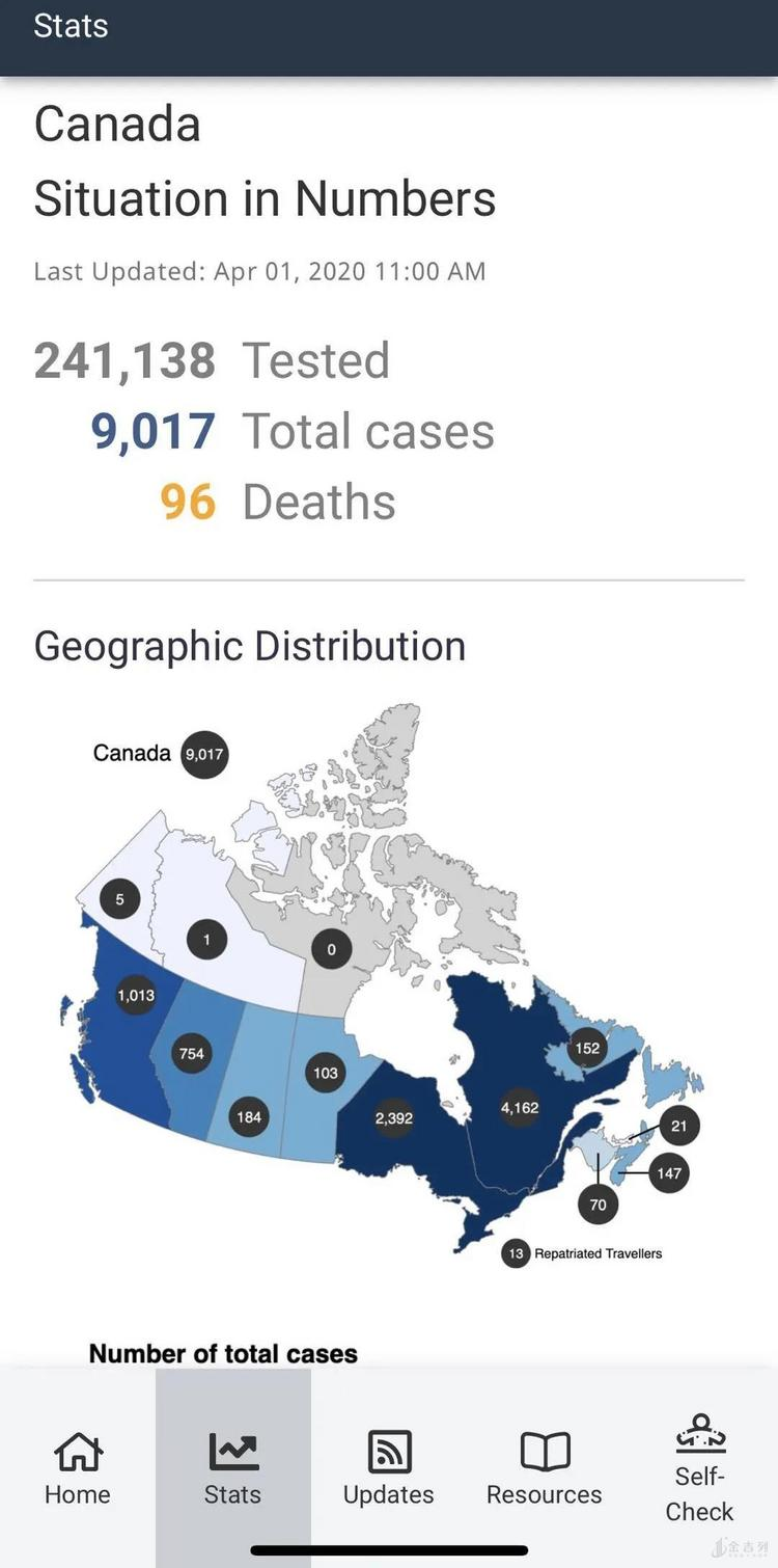 第二个页面 STATS, 是加拿大疫情统计数据。