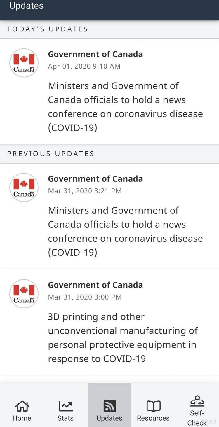 卫生部长 Haju 说: 该应用的发布是为了方便加拿大人, 随时随地了解COVID-19的最新信息, 包括防止病毒传播的建议, 重要的联系信息以及寻求医疗帮助指南。 更重要的是 每个人都可以使用该应用自查症状, 打开以后有英语法语选择, 再选择自己所在省份之后, 主页是这样的。