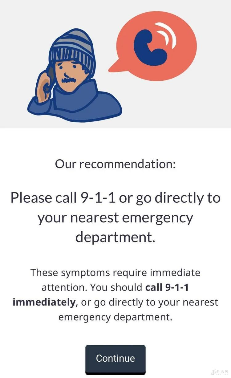 第1个问题是询问症状以 是/否回答, 是否遇到一下症状: 呼吸困难、 严重的胸痛、 很难醒来