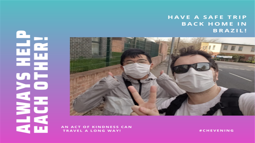我把多余的口罩和消毒洗手液分给了身边几位想回国的朋友,在得知他们已经安全返回了家乡以后,内心感到十分宽慰。此时全球都忙于应对疫情,我们也可以贡献自己的一份力量。小小善举虽微不足道,但也一定能对这个世界产生积极的影响。