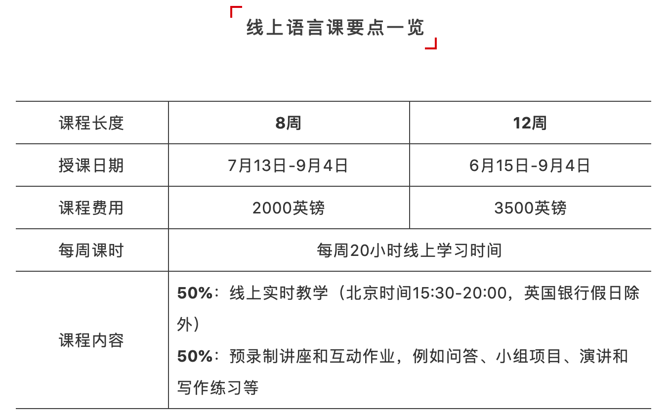 - 取消4周、6周或10周的线下语言课教学,改为8周或12周的线上教学