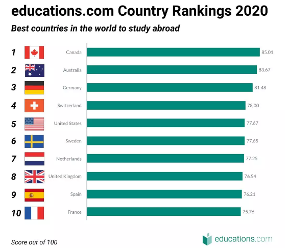 全球教育网发布了2020年全球最佳留学国家排行榜top10。