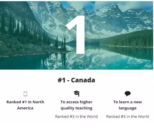 加拿大雄踞榜首,澳大利亚位居第二位,德国排名第三,而美国和英国分别位居第五位和第八位。