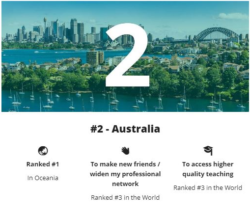 此外澳大利亚在结交新朋友方面的能力也排名第三,在个人发展方面排名第七,这证明了澳大利亚所提供的不仅仅是优质的教育。