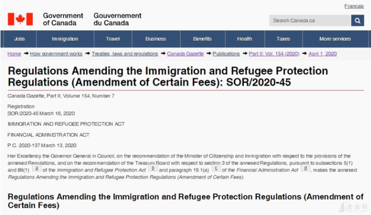 - 新永久居民移民登陆费用调整为500加币(←490加币,上涨2%)。