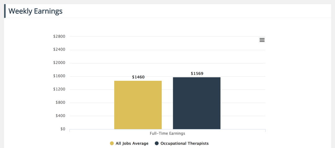 根据Job Outlook官方数据统计,澳洲职业治疗师每周平均工资为$1560,高于澳洲整体平均工资水平每周$1460,还是非常可观的。