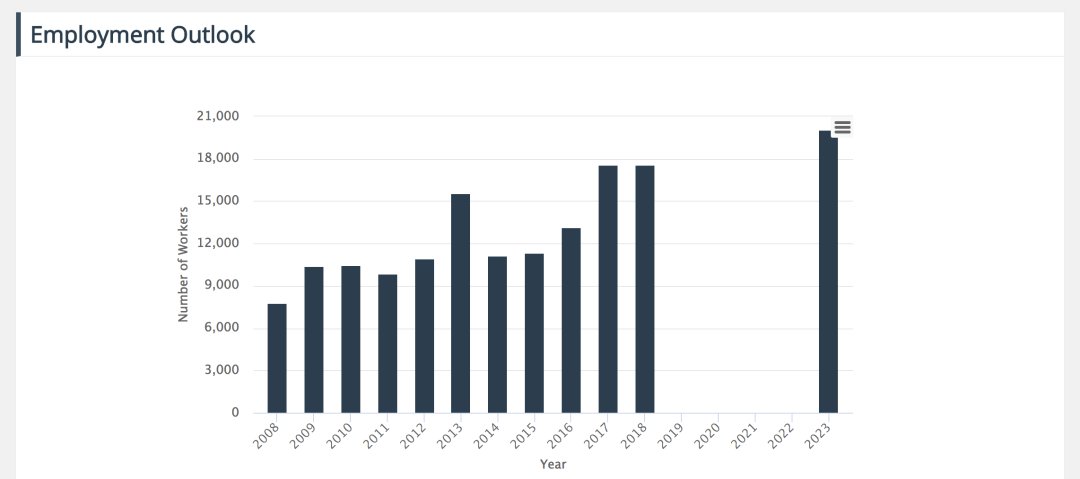 - 在过去5年里,职业治疗师的就业人数强劲增长,预计未来几年里,从2018年的17500人将增至2023年的20000人。