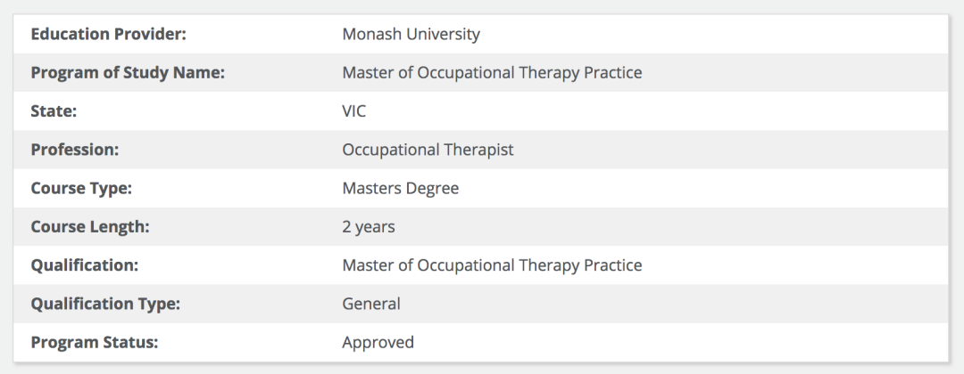 要想成为职业治疗师,必须通过职业认证评估,澳洲评估职业治疗师的机构是The Occupational Therapy Council (Australia & New Zealan) Lt (简称:OTC),作为独立的非营利组织,被澳大利亚职业治疗委员会 (OTBA) 指定提供职业治疗师项目认证的服务,它的宗旨是确保职业治疗师的教育、培训和评估标准得到保持和发展,为澳大利亚公众提供安全保障。