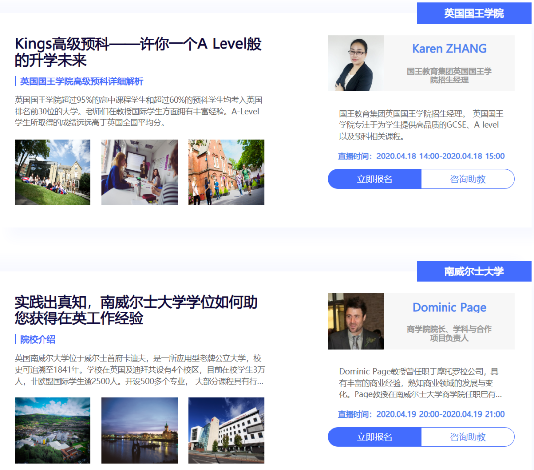 直播现场,各国留学移民规划师将带来疫情下最新留学和移民解析,让大家了解院校全貌、王牌专业、留学费用、就业规划、移民等方面,还会为大家提供在线面试和评估为学生打造通往名校的直通车。