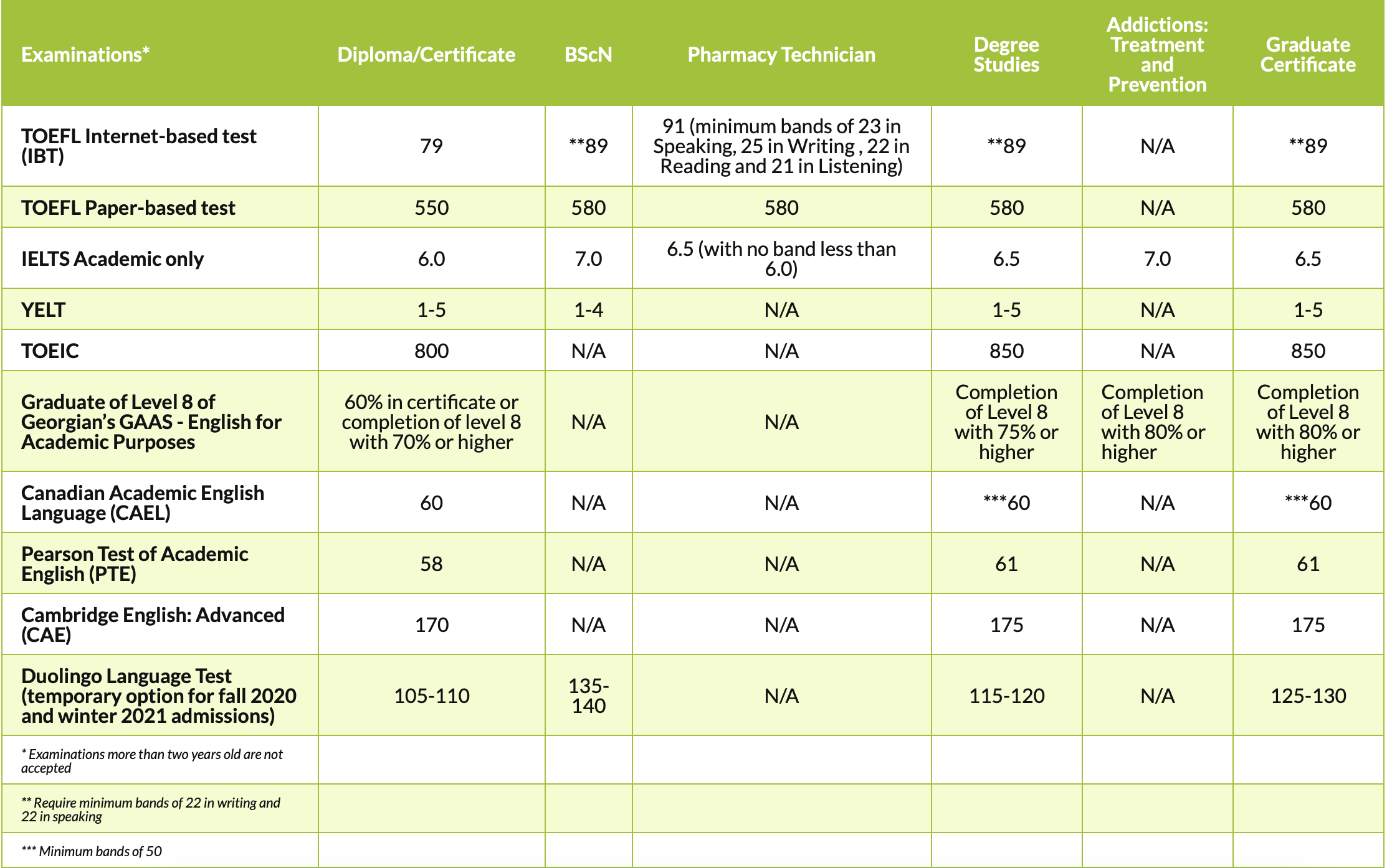 ♦加拿大乔治亚学院各专业Duolingo测试英文水平入学要求请扫码参阅官网(只针对2020年秋季和2021年冬季学期开学的专业)。