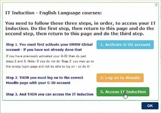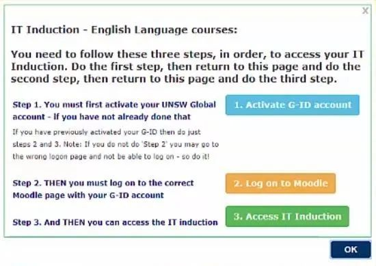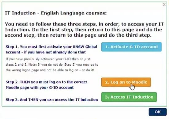 登入Moole平台后,同学们还需返回 my.unswglobal.unsw.eu.au 选择下图所示的绿色选项,在线完成IT指南环节。