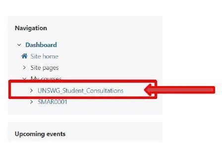 - 在Navigation类别下的My Courses选项中,选择下图所示的UNSWGStuentConsultations链接。
