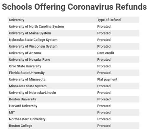 有一些大学表现地很积极,就比如说北卡罗来纳大学系统,已经按照承诺退还了部分费用;还有缅因州大学,也做了同样的表率,总共退还了1280万美元的费用;俄亥俄州立大学、加州大学圣地亚哥分校都紧随其后;内布拉斯加州州立大学系统也表示将退还60%的费用。