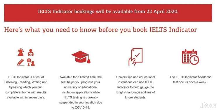 考试预约网址:http://www.ieltsinicator.com/book ,2020年4月22日起接受预订,IELTS Inicator Acaemic考试每周均有一次考试安排。