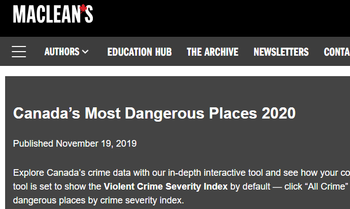 首先还是照例看看2020年加拿大最危险的十个城市是哪些:
