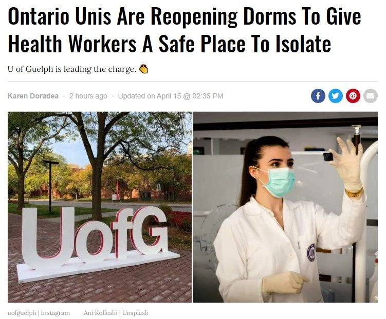 圭尔夫大学发言人安吉拉·穆赫兰(Angela Mulhollan)通过电子邮件告诉Narcity的记者,“不少医护人员向我们寻求帮助,想了解学校是否有地方供他们居住,他们非常担心自己不慎感染病毒,并在下班回家后传染给家人。他们需要一个能实现自我隔离的地方。”