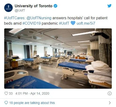 多伦多大学在疫情期间向当地医院提供了14张病床。