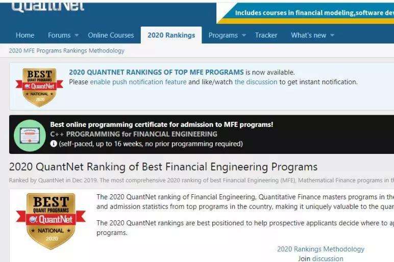 金融工程是一门交叉学科,几年来备受学生青睐,今天为大家带来一份QuantNet发布的2020年金融工程硕士排名。有意向申请这个专业的同学可以收藏啦!