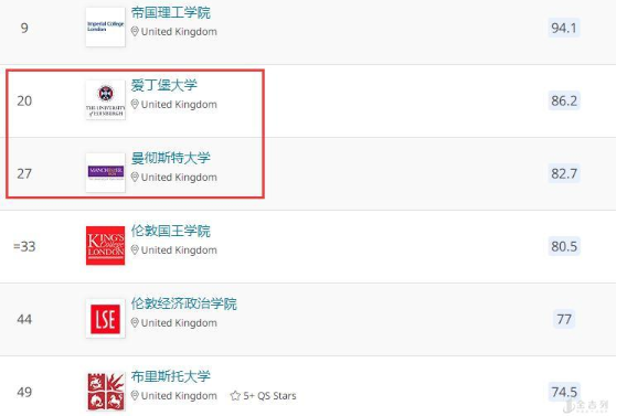 2020 年 QS 世界大学综合排名中,爱丁堡大学和曼彻斯特大学分别排在第 20 和第 27 ,爱大略高,两个学校非常接近。