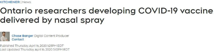 据英文媒体CTV News报道,滑铁卢大学目前正在研究一种用来抵御新冠病毒的疫苗,该疫苗可以通过鼻腔吸入进行接种,打破了传统的注射接种方式,用来治疗和免疫该病毒。