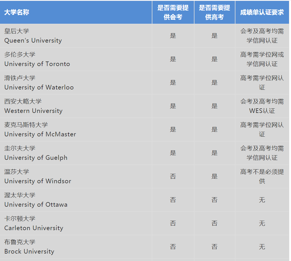 史上最全加拿大各省本科高校对会考和高考成绩单要求