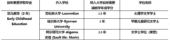 凯布莱恩早期幼儿教育专业的学生, 通过创造一个安全的学习环境并营造一个良好的学习氛围,促进每一位儿童身心全面的发展。该专业的学生从幼儿课程设计和幼儿教学技巧中获得专业知识以满足每位儿童的需要。该专业需要每位学生积极参与其中并提高自身意识、沟通能力和人际交往技巧,幼儿教育专业共4个学期(二年制), 每学期都会安排学生到幼儿园实习。