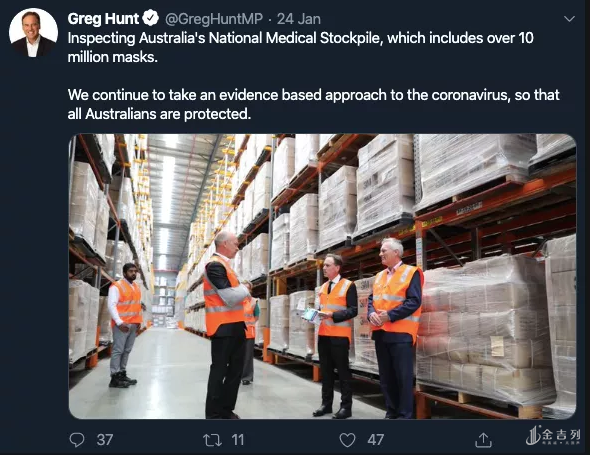 卫生部长greg hunt还表示,目前澳洲的口罩库存为6000万只,澳洲政府已分发了2200万只。