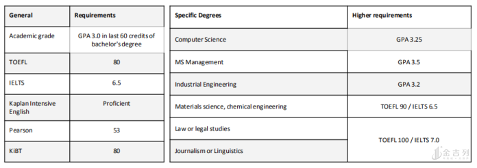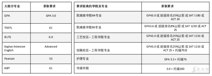 本科:无 SAT / ACT 要求,符合条件的学生每年都会获得奖学金,金额高达 $3000-$12000/ 年