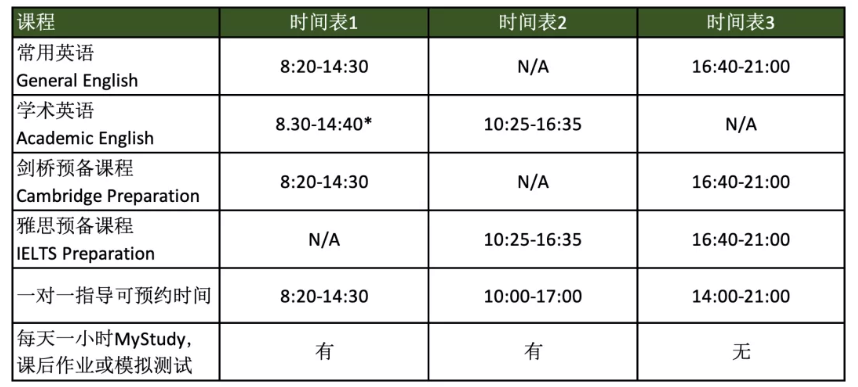 - 常用英语General English,雅思预备课程IELTS Prep,剑桥预备课程Cambrige Prep均为: $300/周
