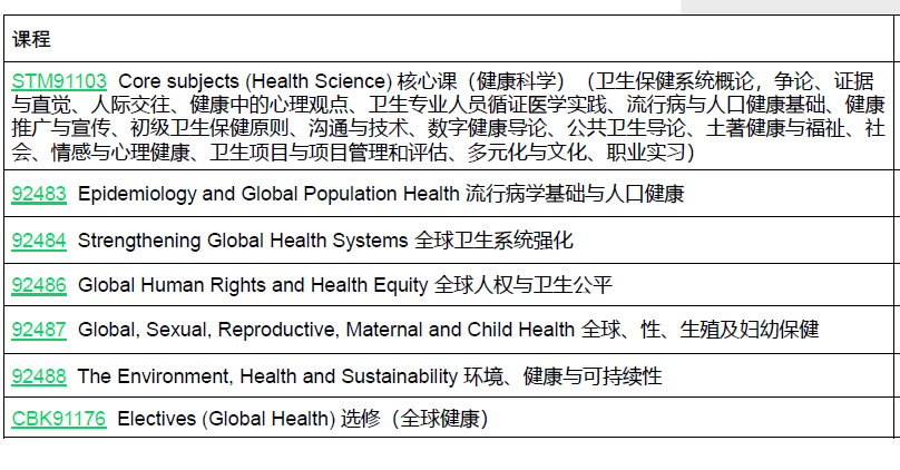Global Health 全球健康专业课程