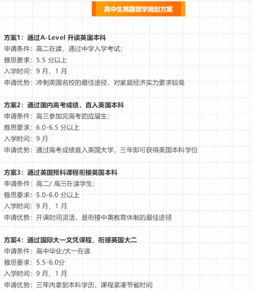 那么对于想要出国读本科的学生,要怎样制定自己的留学方案呢?高考成绩是否可以直接用来申请国外的大学呢?在此我们整理了高中生英国的留学规划方案供同学们参考。