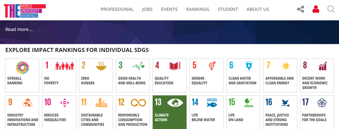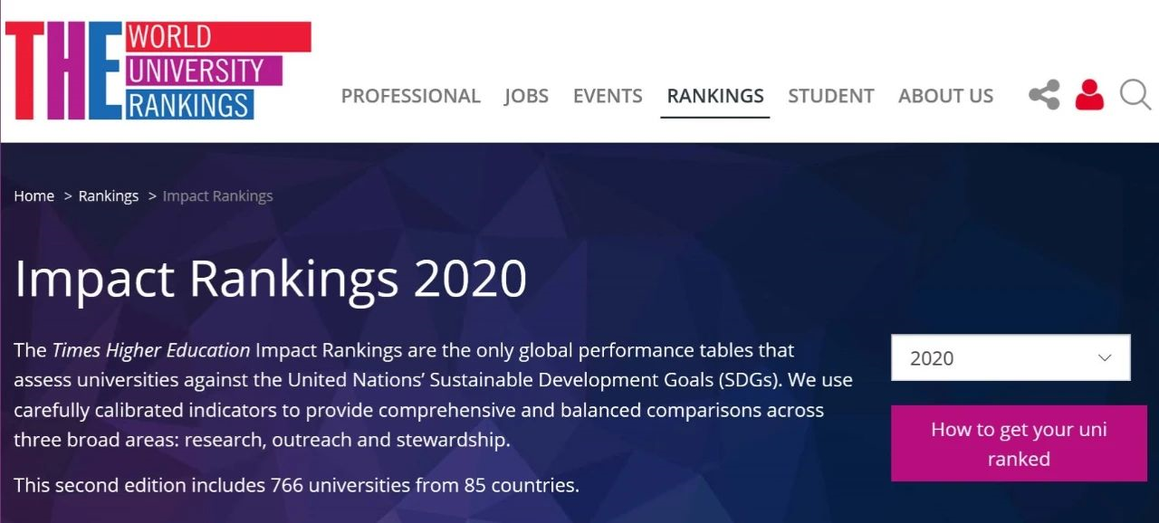 泰晤士高等教育世界大学影响力排行榜据联合国的17项可持续发展目标(SDGs)对大学进行评估,展示大学对地球产生的积极社会和经济影响的程度。